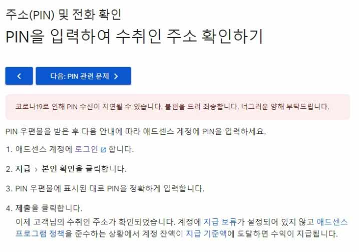 1. 애드센스 고객센터에서 핀번호 입력하는 방법