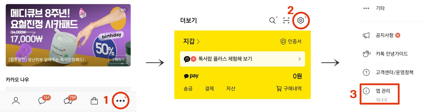 - 하단의 앱관리에서 카카오톡 버전 확인