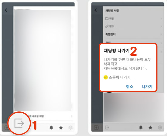 단, 채팅방 목록에서 나가기를 눌러 방을 나가는 경우에는 해당 기능이 적용되지 않으므로 꼭 채팅방에 들어가서 나가시기 바랍니다.